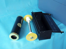 12、将装好胶卷的供片轴放入供片盒中。(注意胶片方向:胶卷内侧药膜朝向照排机后方)
